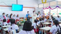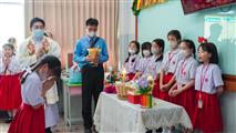 ตัวแทนคณะครูและนักเรียนคำนับคณะผู้บริหารเนื่องในวันคริสต์มาส