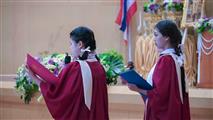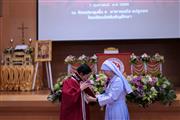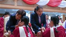 พิธีรับวุฒิบัตรของนักเรียนชั้นมัธยมศึกษาปีที่ 6 เต็มไปด้วยความสง่างาม เรียบร้อย และอบอุ่น สมกับเป็นโรงเรียนกุลสตรีที่มุ่งปลูกฝังทั้งความรู้และคุณลักษณะที่งดงาม ถึงแม้ว่าเด็กยุคใหม่จะมีสีสันตามวัยแต่เมื่อถึงเวลาพิธีการทุกคนต่างสำรวมและวางตัวได้อย่างเหมาะสม สร้างความประทับใจแก่ผู้พบเห็น วันนี้จึงเป็นวันแห่งความภูมิใจของทั้งนักเรียนและผู้ปกครอง ลูกสาวได้สวมชุดพิธีอย่างสง่างาม ส่วนคุณพ่อคุณแม่ก็เปี่ยมด้วยความหวัง ช่วงหนึ่งที่เปี่ยมด้วยความหมายคือภาควจนพิธีกรรม หลังบทพระวรสาร คุณพ่ออดิศักดิ์ สมแสงสรวงได้มอบข้อคิดเรื่อง “การเป็นของขวัญ” โดยเชิญชวนให้นักเรียนแต่ละคนพิจารณาว่า ชีวิตของตนจะเป็นของขวัญที่มีคุณค่าสำหรับผู้อื่นได้อย่างไร อาจเป็นข้อคิดหรือคำถามเรียบง่ายแต่ลึกซึ้งที่ชวนให้เด็กๆ นำไปไตร่ตรองในเส้นทางชีวิตข้างหน้าหลังเสร็จพิธี สมาชิกในครอบครัวและผู้คนมากมายร่วมแสดงความยินดี รอยยิ้ม ความอบอุ่น และความชื่นชมยินดีปรากฏอยู่ทั่วบริเวณ เป็นภาพแห่งความสำเร็จที่งดงามและน่าจดจำมากค่ะ |