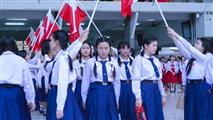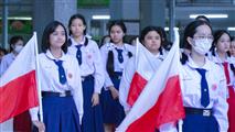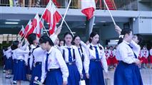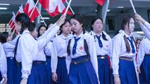 เริ่มต้นด้วยขบวนเดินผ่านซุ้มธงขาว–แดงอย่างสง่างาม