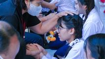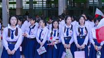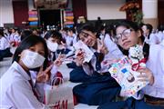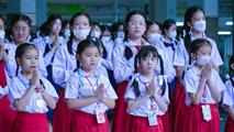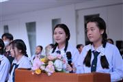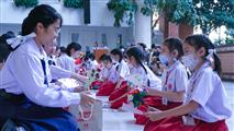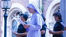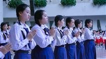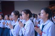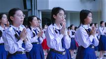 ตัวแทนนักเรียนนำพวงมาลัยถวายแด่พระแม่มารีย์